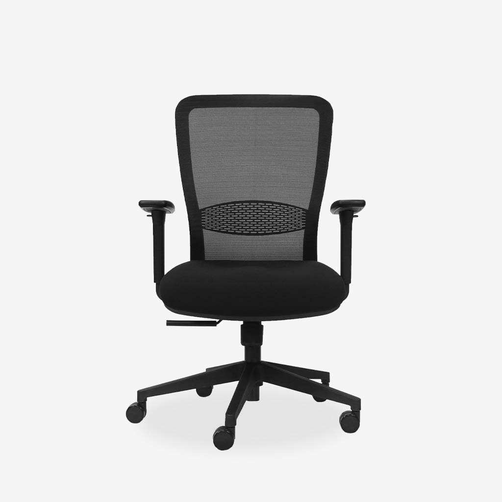 - Brazos: Abatibles con espuma de poliuretano tapizados en tela color negro.