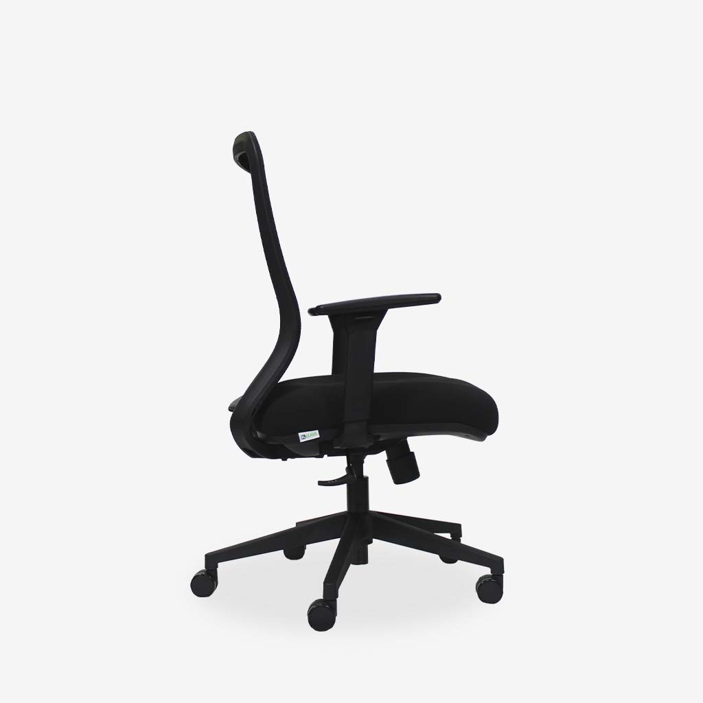 - Asiento: Asiento acojinado con espuma de poliuretano inyectado, tapizado en negro.