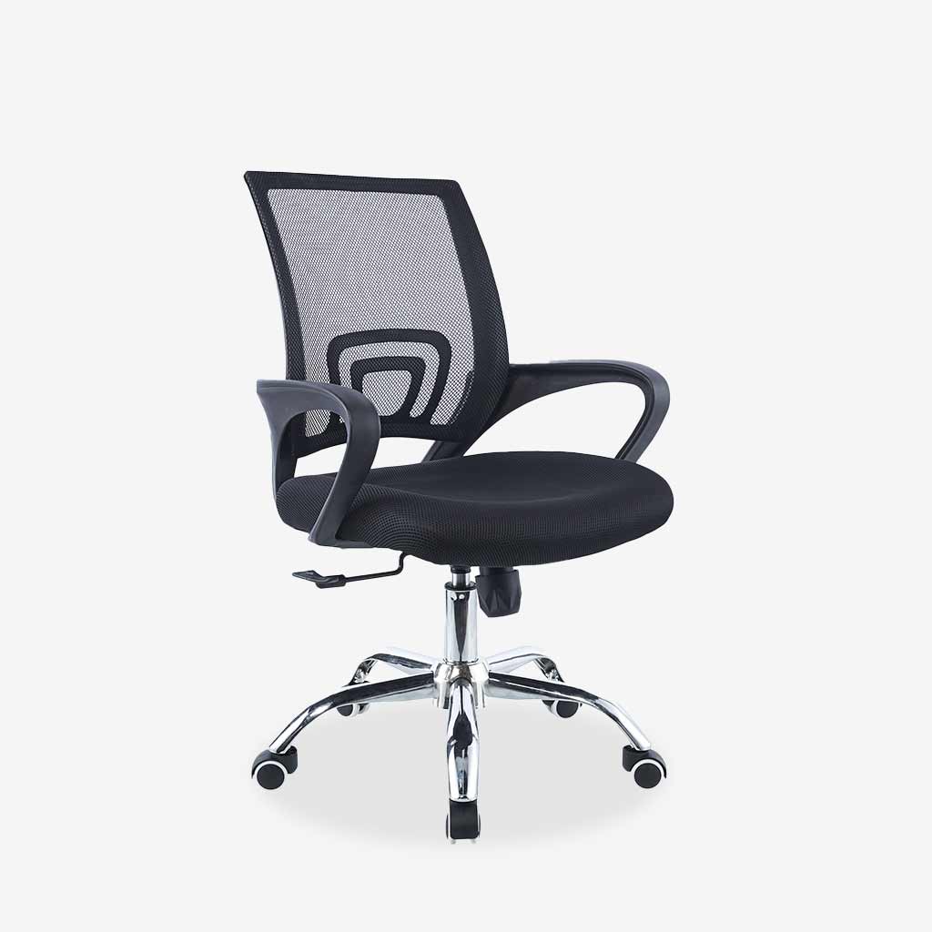 - Respaldo: Respaldo en malla color negro, asiento espuma moldeada.