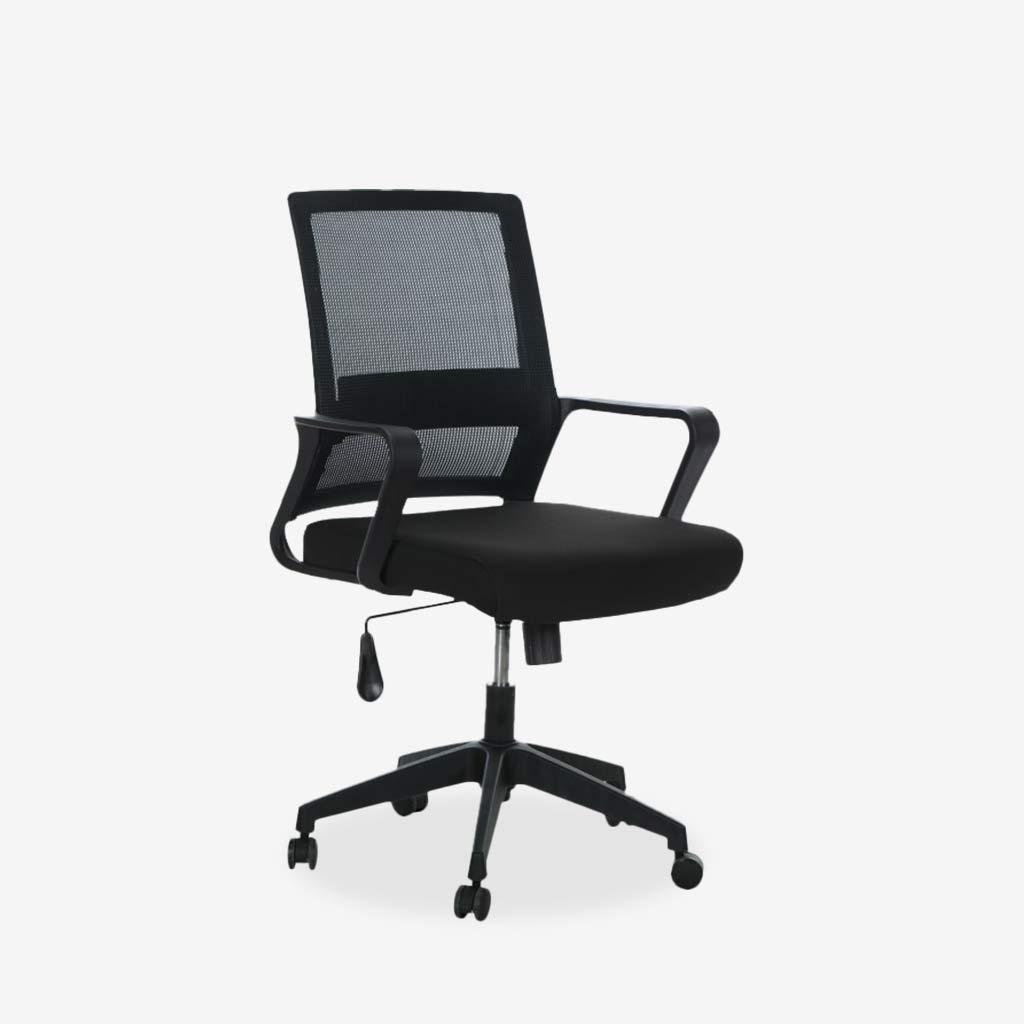TURI es una silla operativa que combina un respaldo en malla mesh negra que permite una ventilación constante con un asiento de espuma de poliuretano que brinda comodidad prolongada. Cuenta con descansabrazos fijos en polipropileno rígido y base en estrella del mismo material, ofreciendo estabilidad y resistencia.